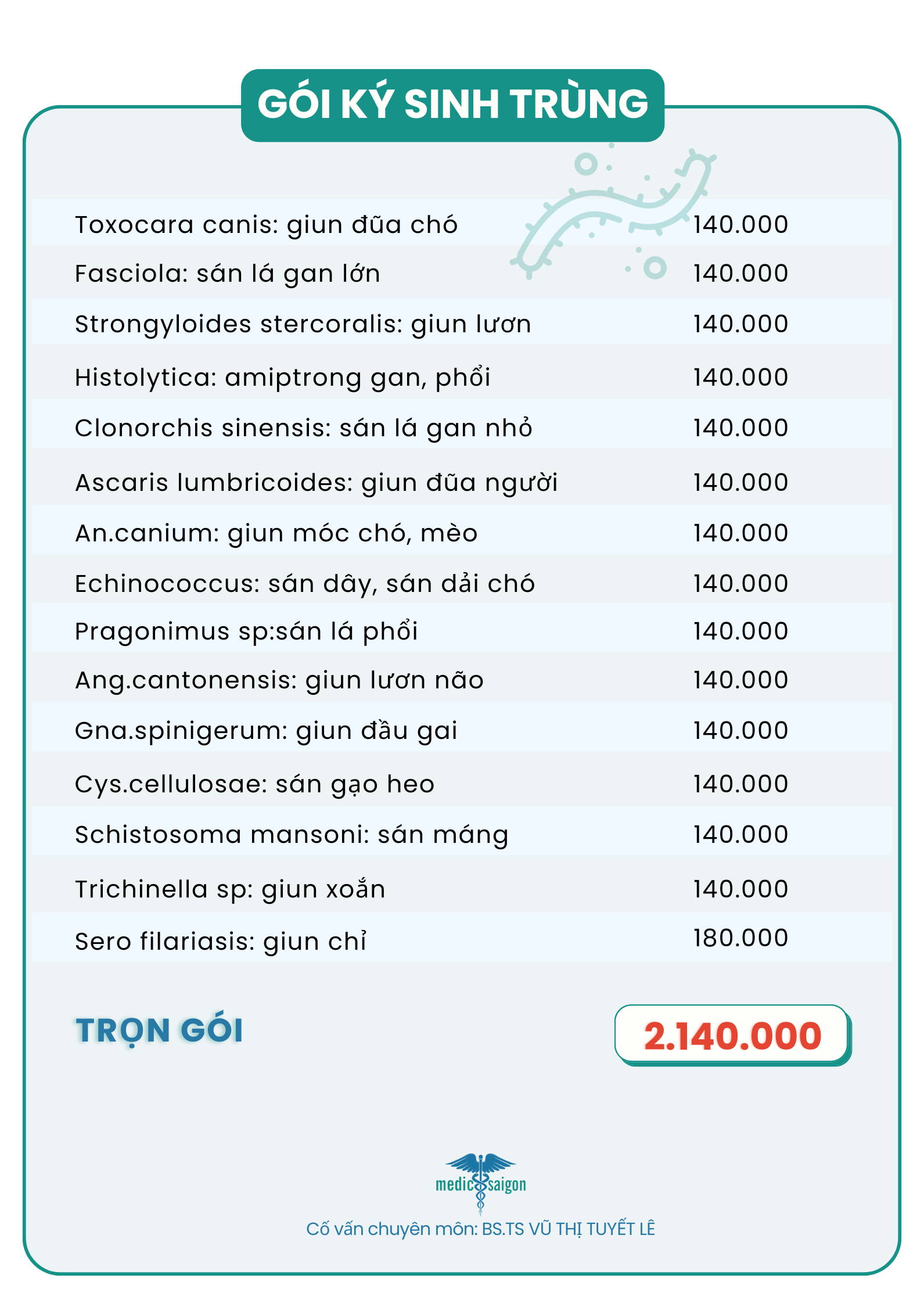 Tham khảo: Bảng giá gói xét nghiệm ký sinh trùng mới nhất 2026 của Medic Sài Gòn
