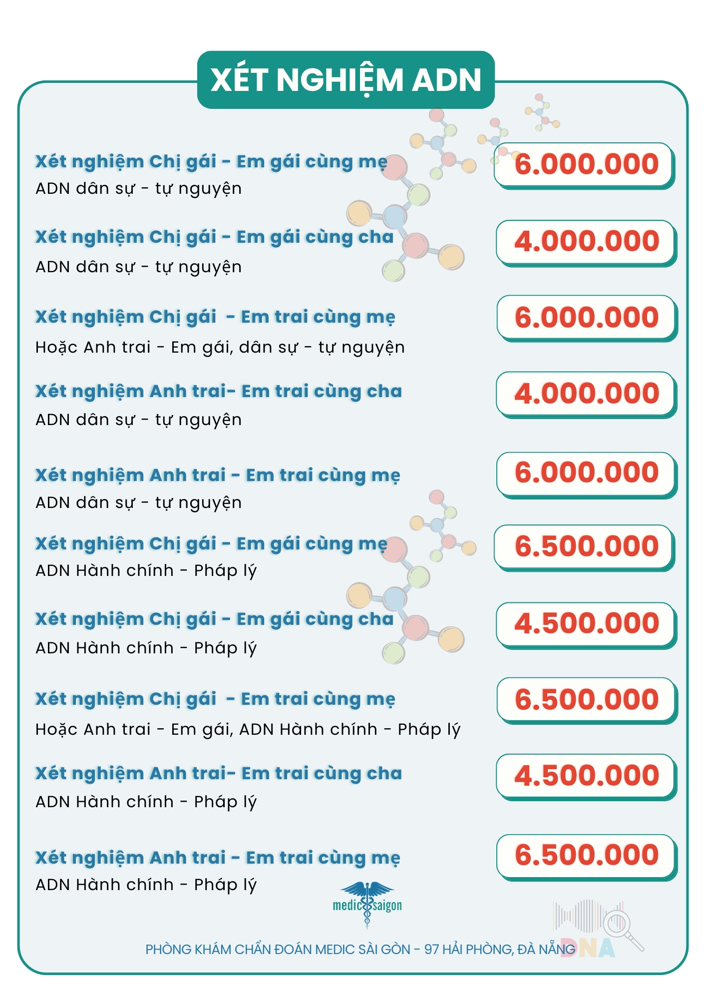 Phòng khám Chẩn đoán Medic Sài Gòn tại Đà Nẵng dịch vụ phân tích và xét nghiệm ADN tại Đà Nẵng chuyên nghiệp hoàn toàn chính xác, bảo mật thông tin tuyệt đối, luôn đồng hành cùng quý khách hàng mọi lúc mọi nơi